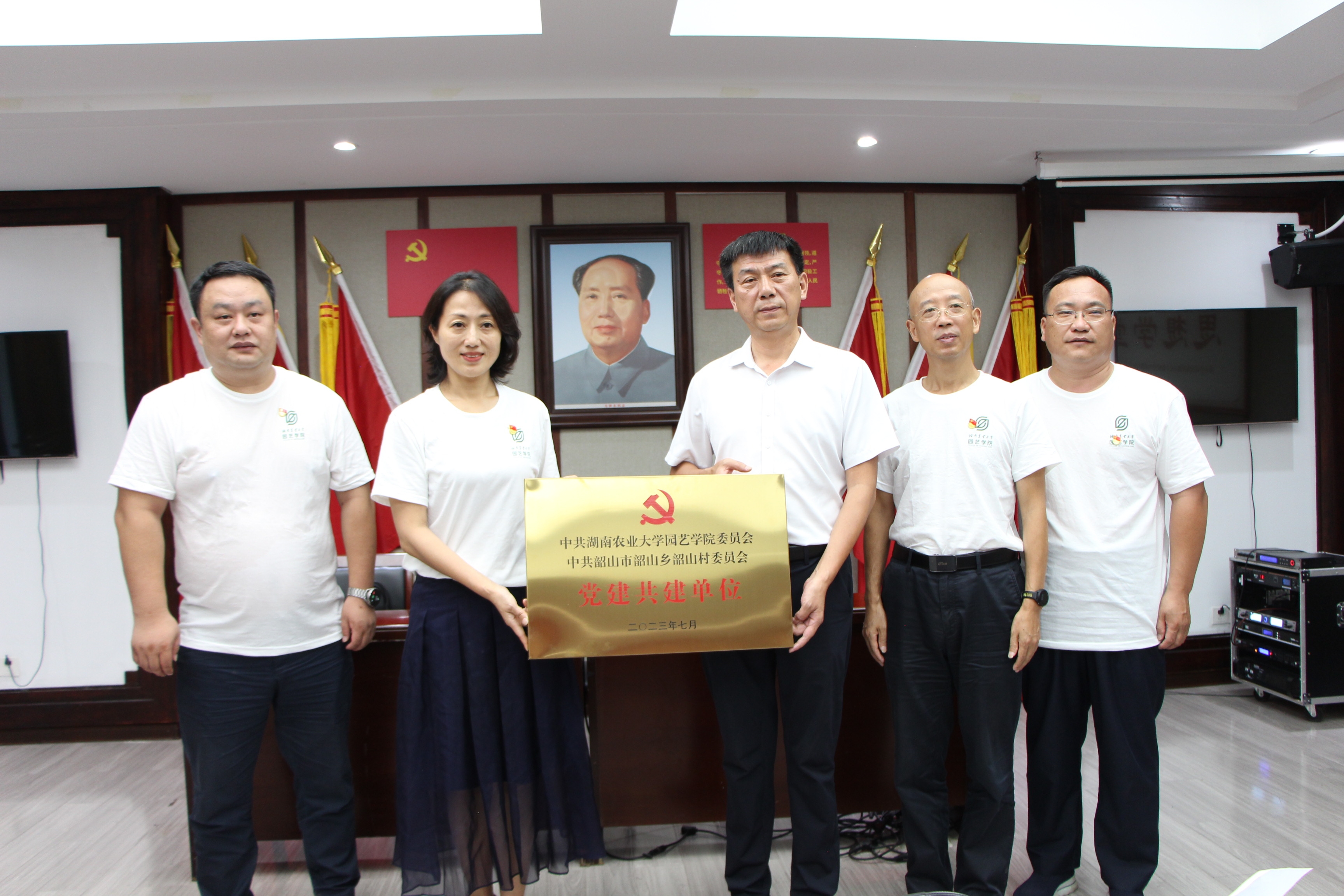 bevictor伟德官网党委与韶山村党委共同揭牌——“党建共建单位”,希望双方加强党建联系,通过在伟人故里开展红色研学,感受浓厚的红色文化氛围,推动双方支部理论联学、思想联育、人才联培、活动联办,实现“红色+”文化党建聚合发展。在韶山市三农培训中心双方共建“‘红色+’园艺产业社会实践基地”,旨在发挥园艺学科优势,科技下乡定点帮扶,通过社会实践深入调查研究,为农业发展精准建言献策,为农民增收创收,助力韶山产业发展、乡村振兴。