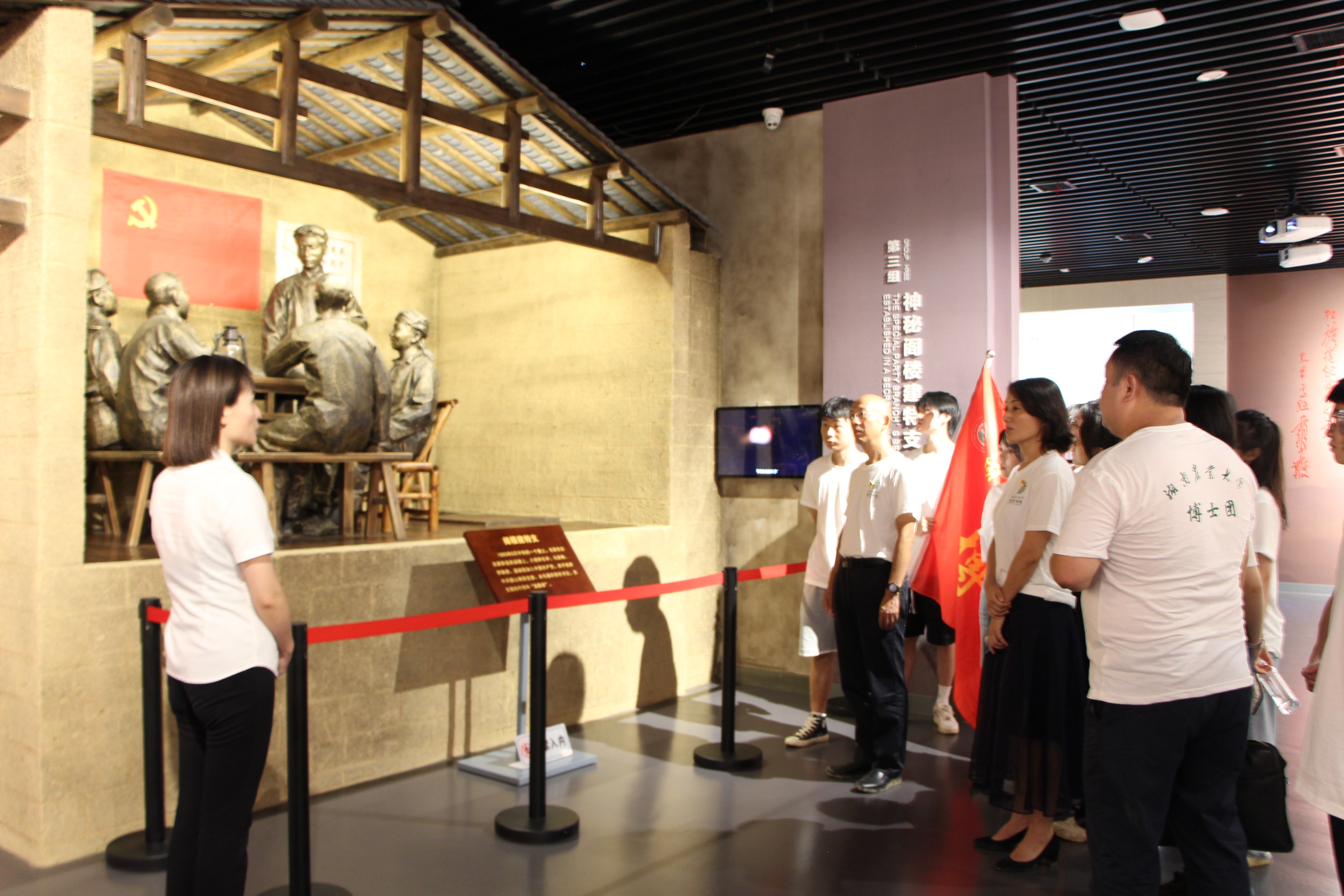 (师生党员参观韶山村党支部特别陈列纪念馆)