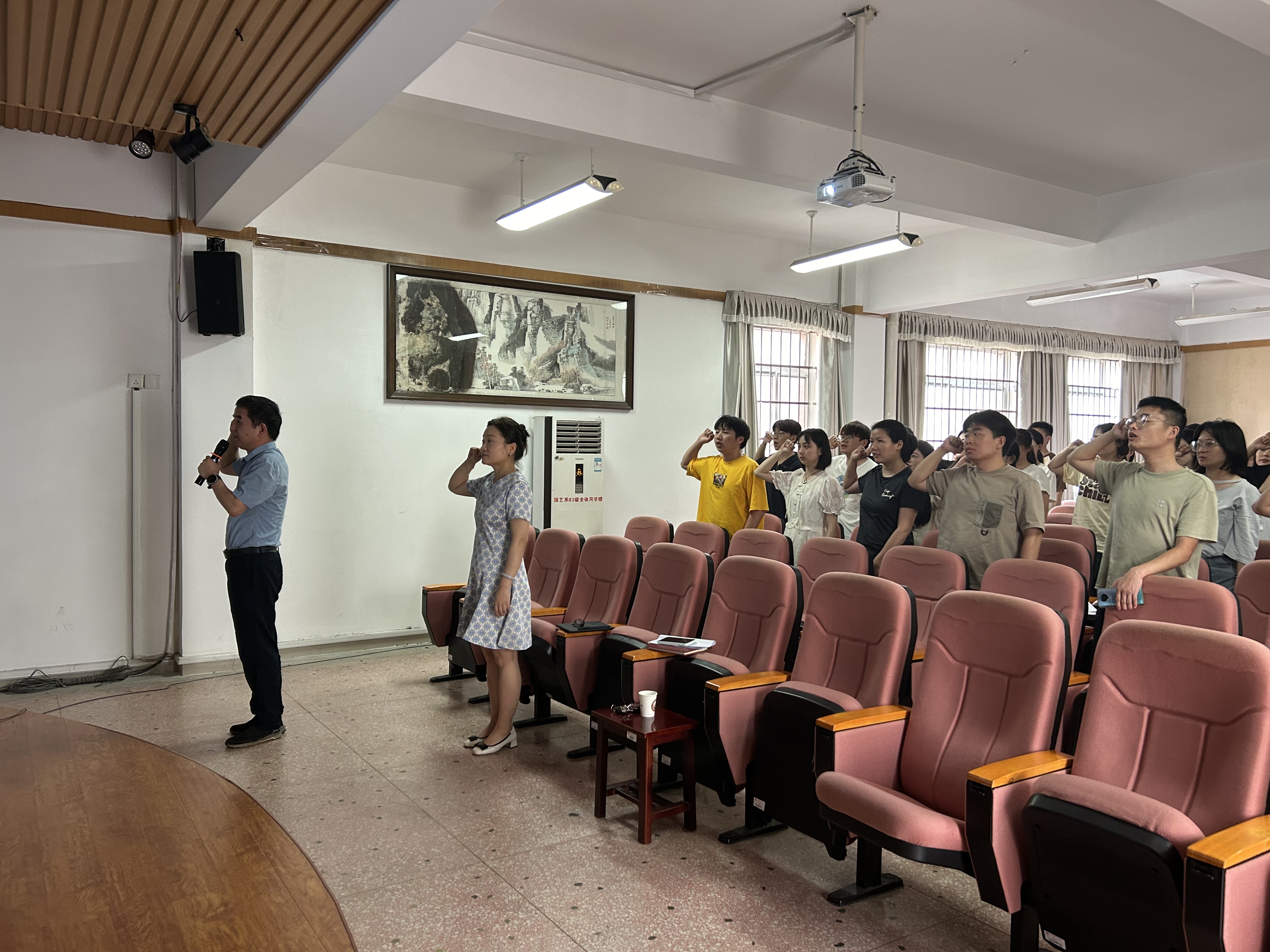 最后,何长征带领全体与会党员重温入党誓词。通过此次教育活动,进一步激发了毕业生党员爱党爱国爱校热情,明确自己在社会中的角色和定位。希望全体党员同学们能够自觉增强“四个意识”、坚定“四个自信”、做到“两个维护”,积极投身到党和人民的伟大事业中去。