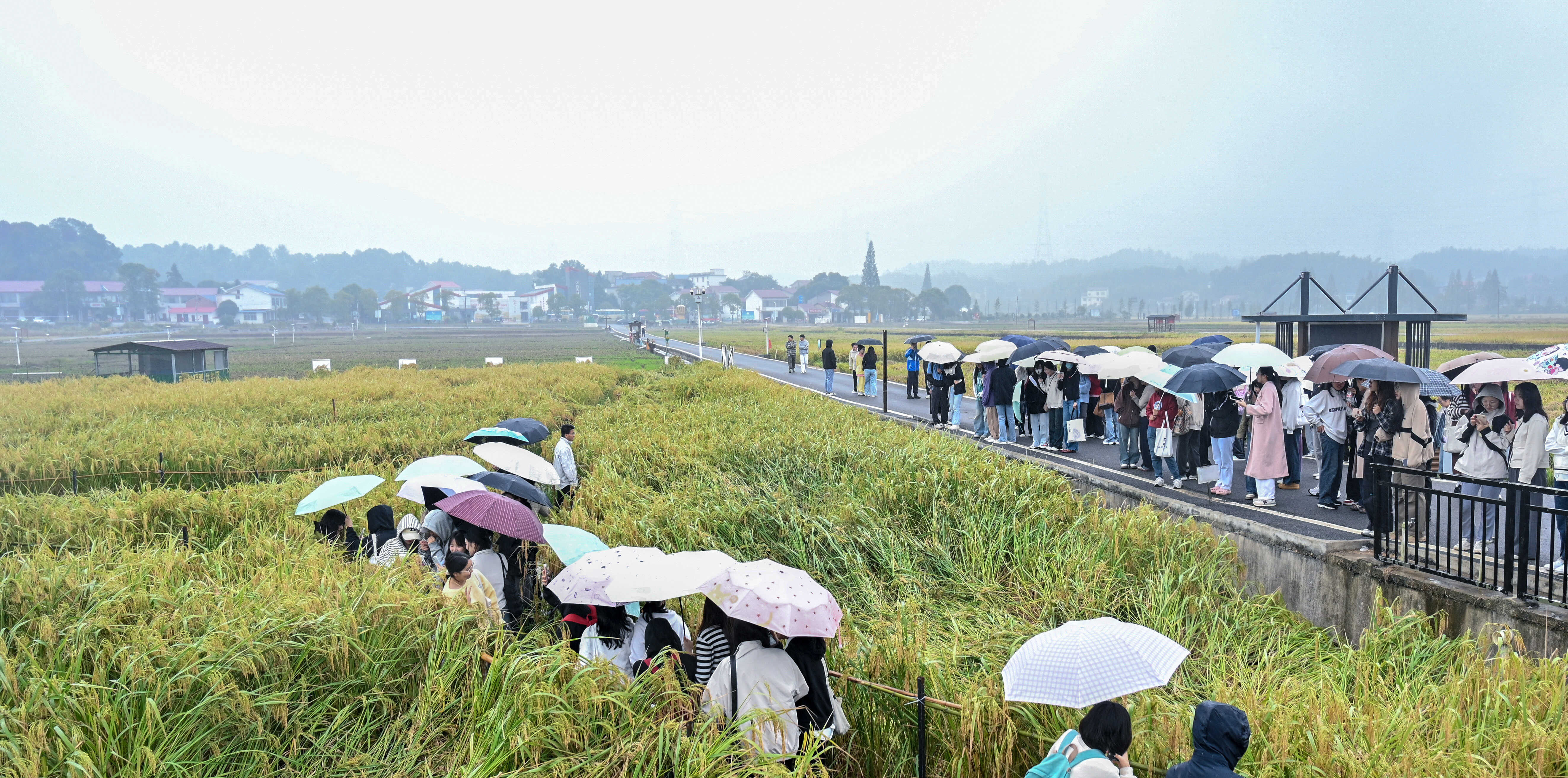 在隆平稻作公园,党员同志们深入了解了农业科学家的创新成果,体验了现代农业的气象和农民的幸福生活。他们近距离观察了“巨型稻”的结穗情况,在接近2米高的“巨型稻”下争相感受袁爷爷的“禾下乘凉梦”。