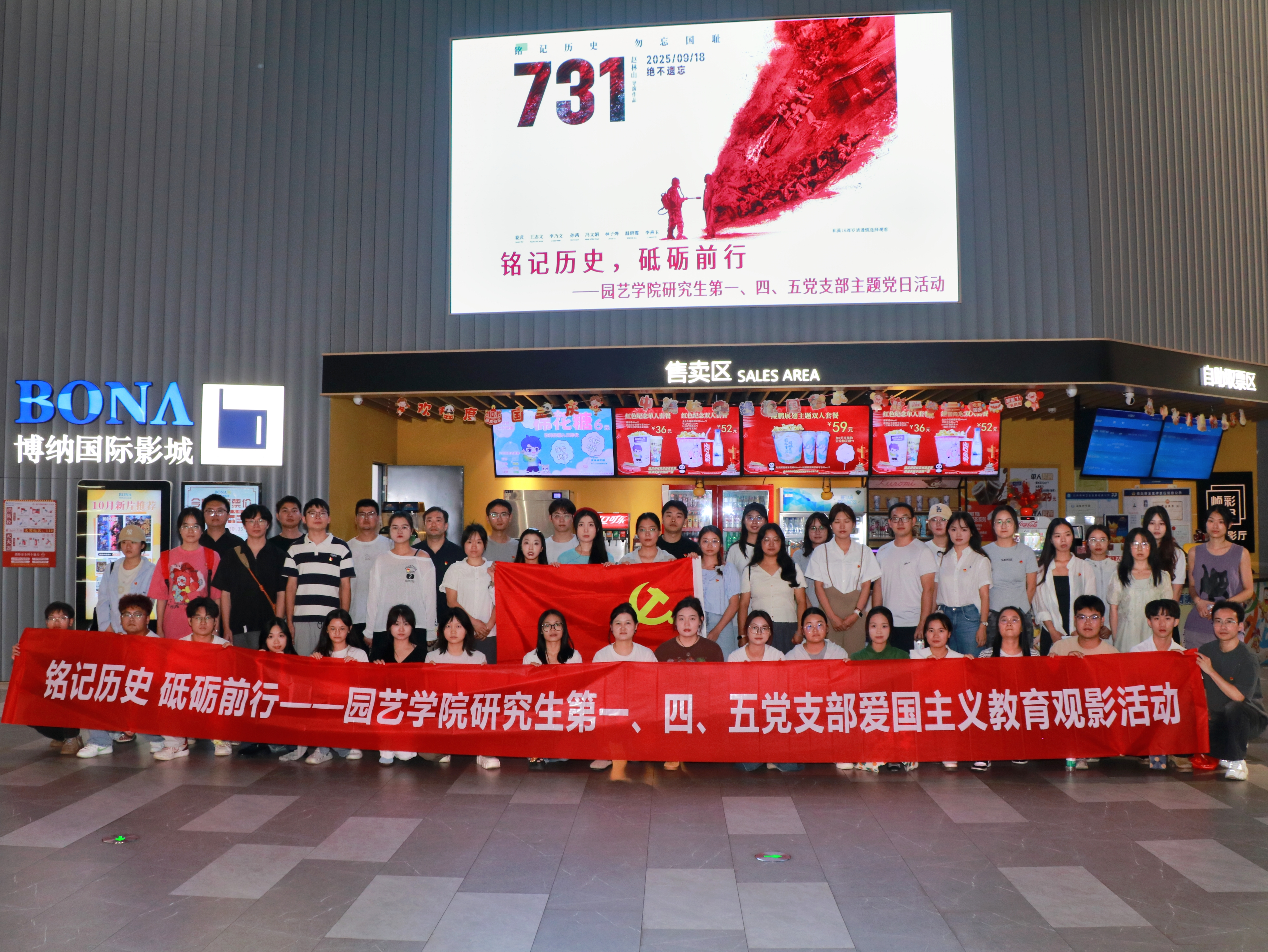 本网讯(bevictor伟德官网 奎冉)2025年10月11日,bevictor伟德官网研究生第一、第四、第五党支部,在长沙市龙湖芙蓉天街联合开展“铭记历史,砥砺前行”《731》观影主题党日活动,62名党员参与。