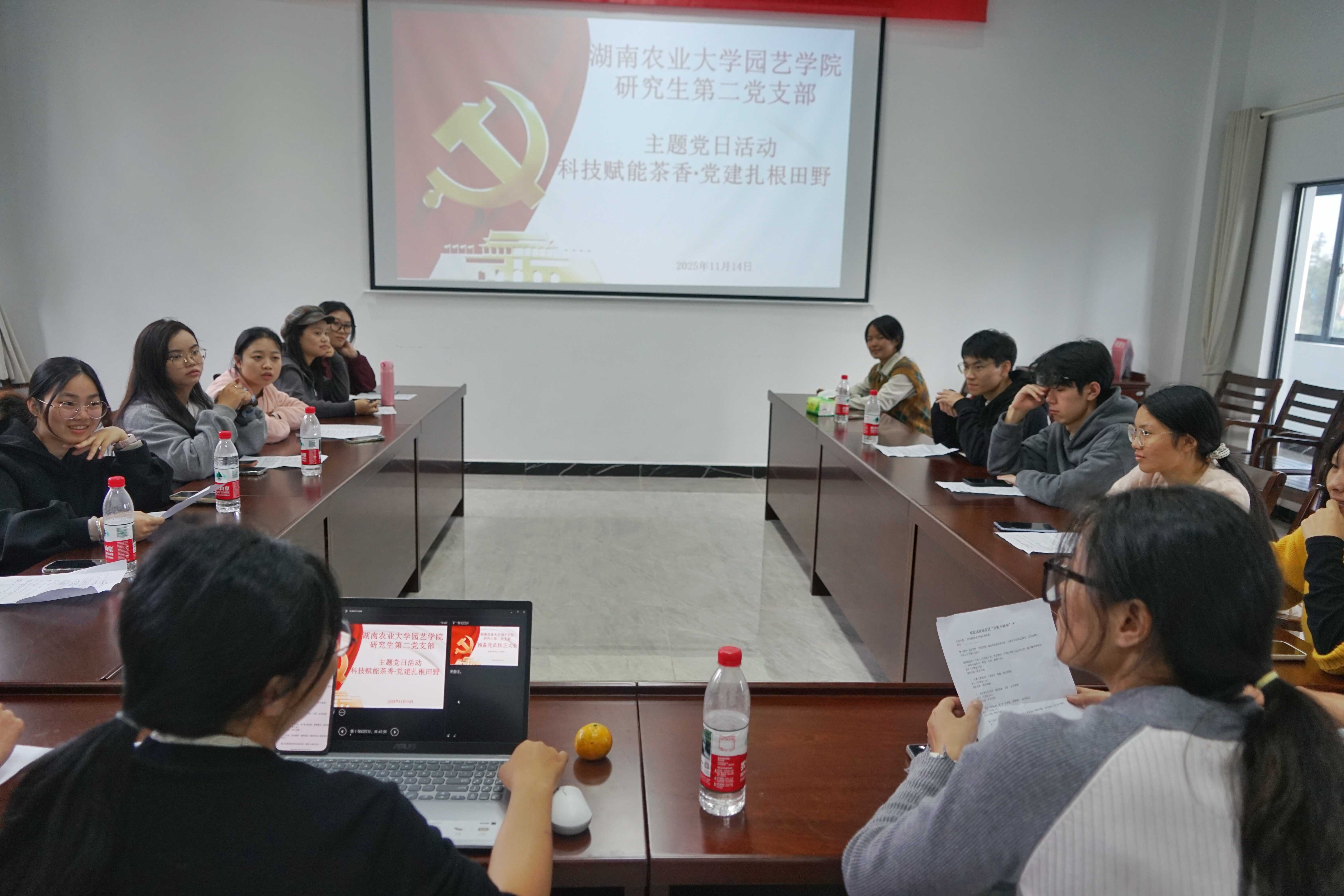 实践结束后,支部与台站研究人员围绕茶园管理技术难点及提升茶园生态与经济效益等议题展开专题研讨。茶学专业的党员同志结合专业知识积极建言献策,现场思想碰撞激烈。