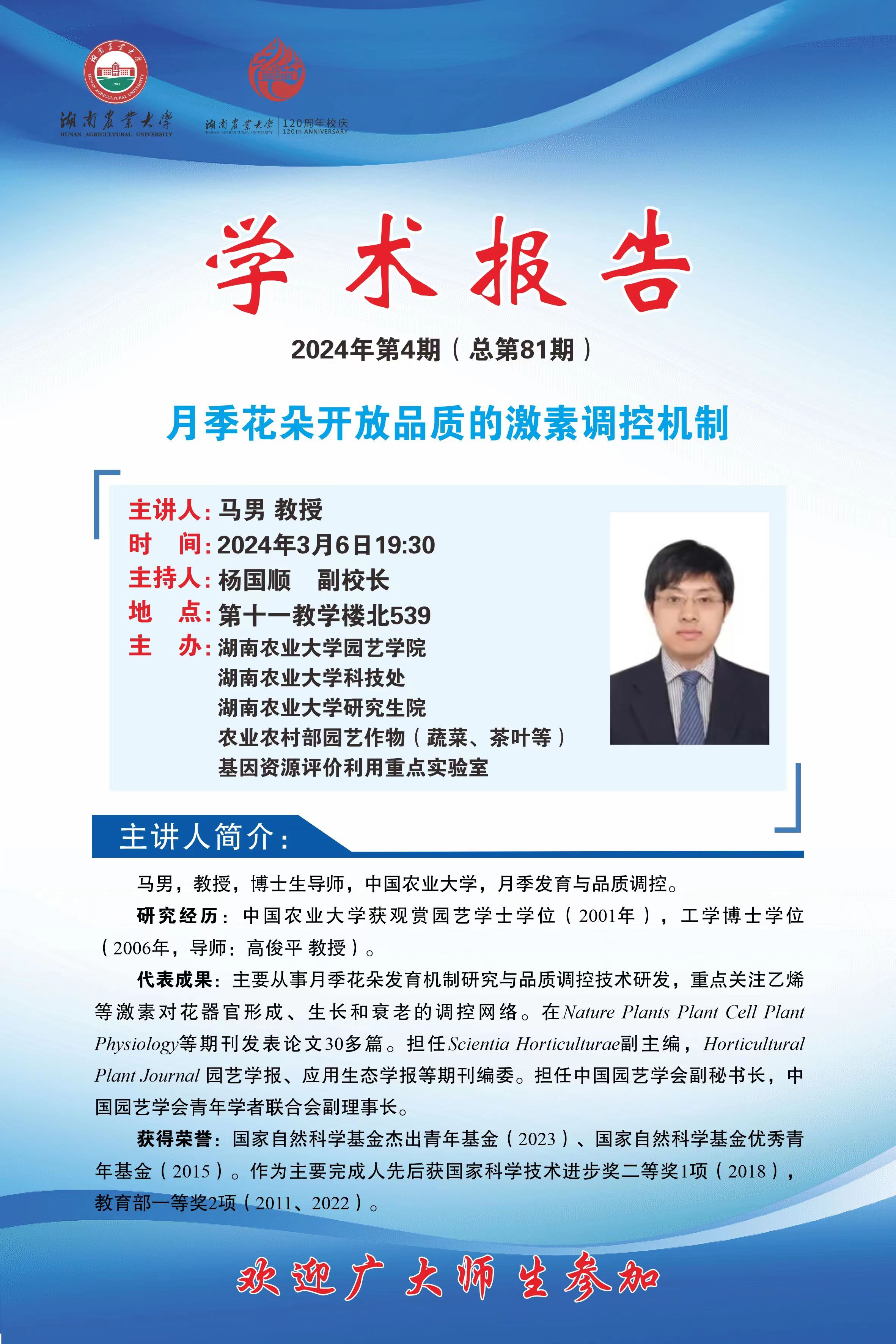 bevictor伟德官网第八十一期-名师讲坛:月季花朵开放品质的激素调控机制