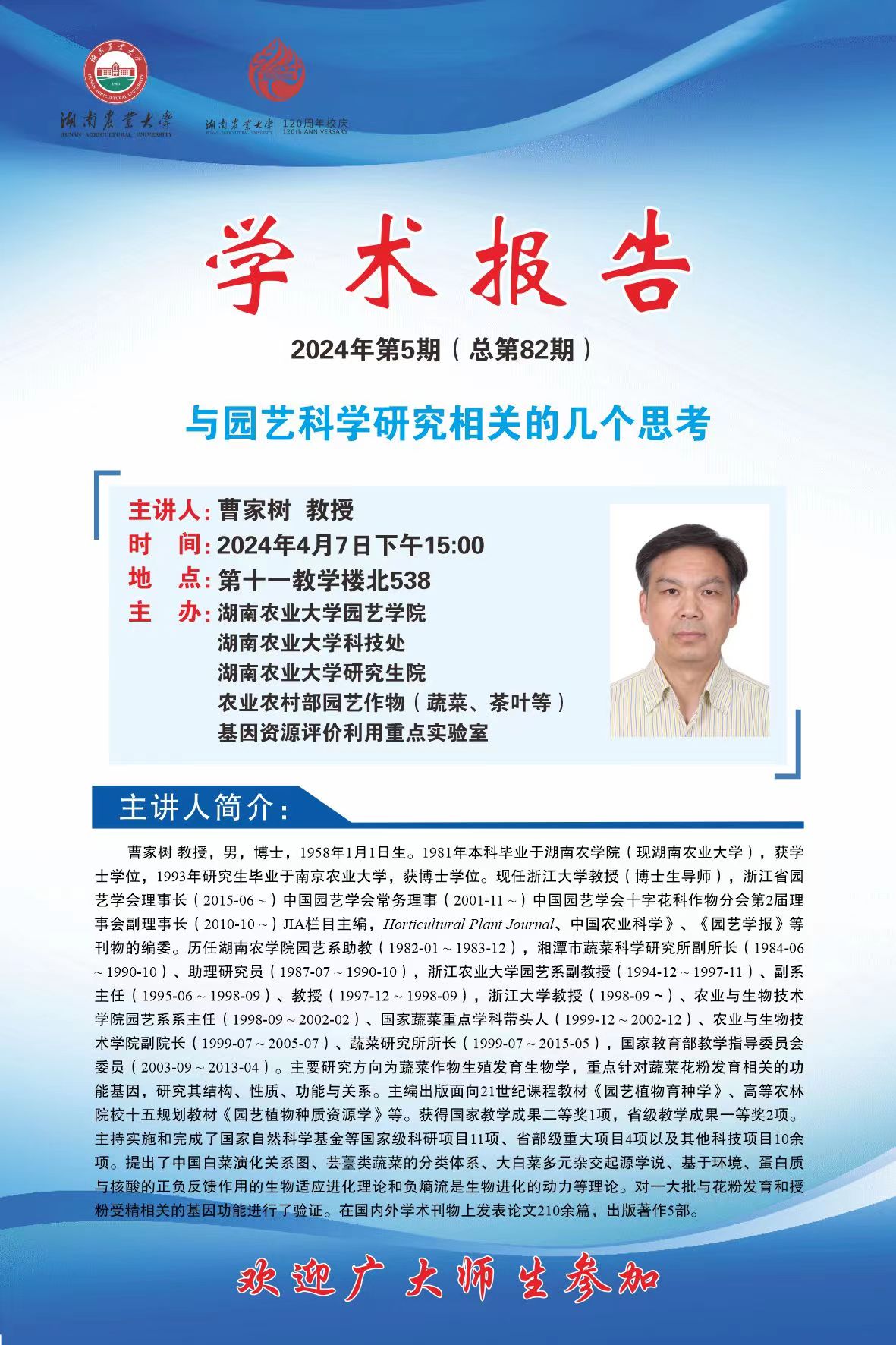 bevictor伟德官网第八十二期-名师讲坛:与园艺科学研究相关的几个思考