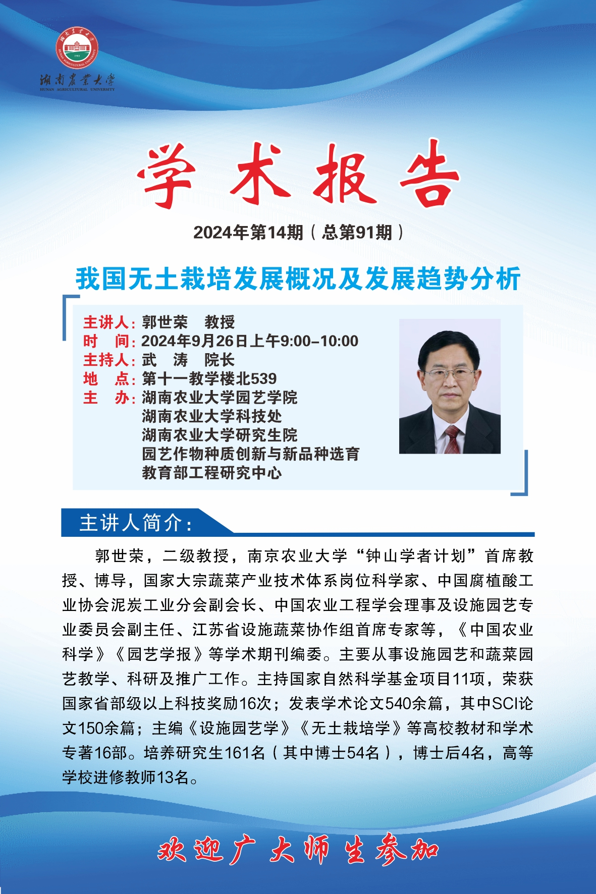 bevictor伟德官网第九十一期-名师讲坛:我国无土栽培发展概况及趋势分析