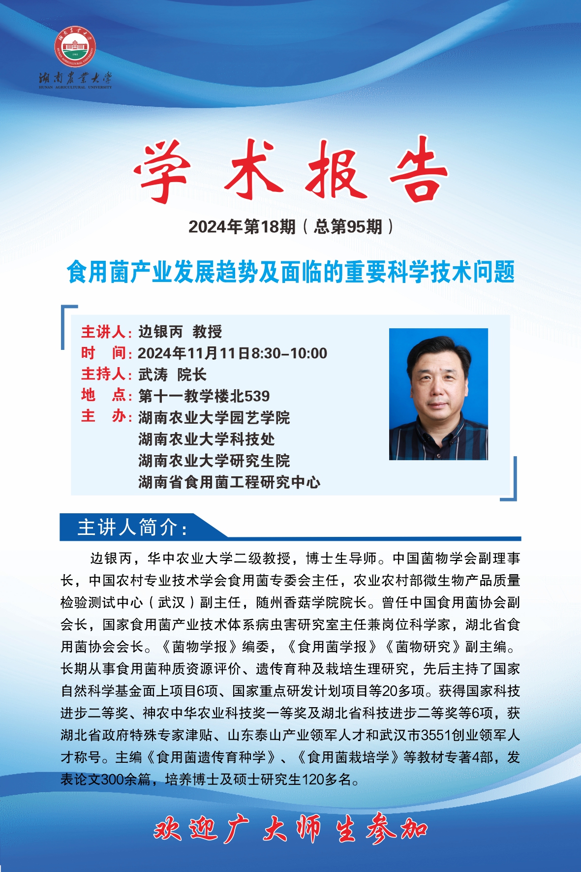 bevictor伟德官网第九十五期-名师讲坛:食用菌产业发展趋势及面临的重要科学技术问题
