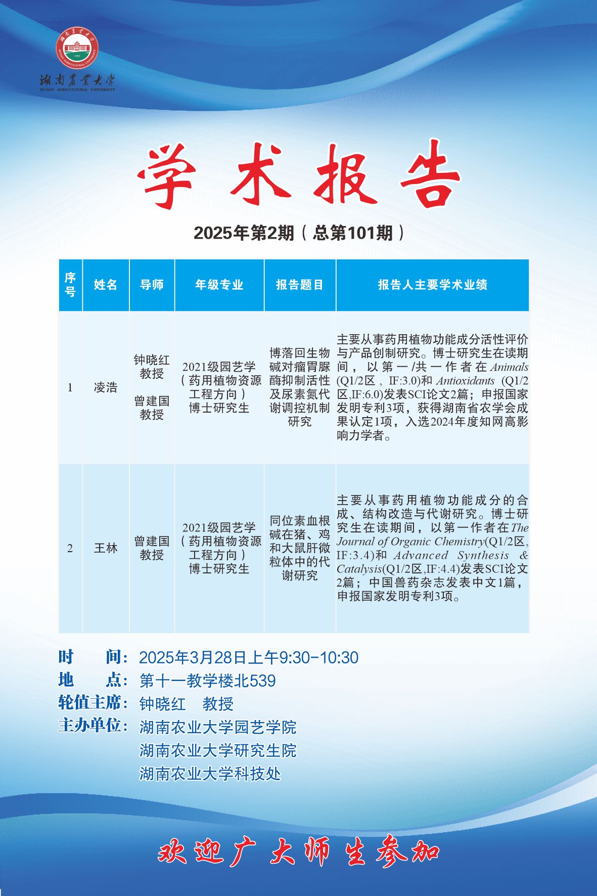 bevictor伟德官网第101期-博学讲坛:博落回生物碱对瘤胃脲酶抑制活性及尿素氮代谢调控机制研究;同位素血根碱在猪、鸡和大鼠肝微粒体中的代谢研究