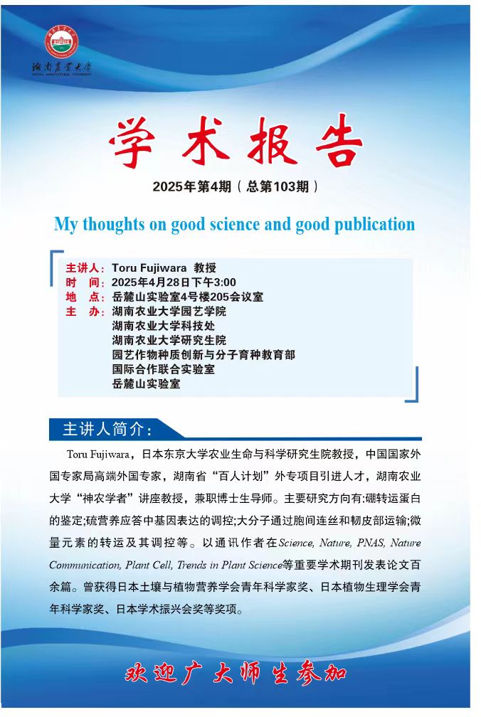 bevictor伟德官网第103期-名师讲坛:My thoughts on good science and good publication