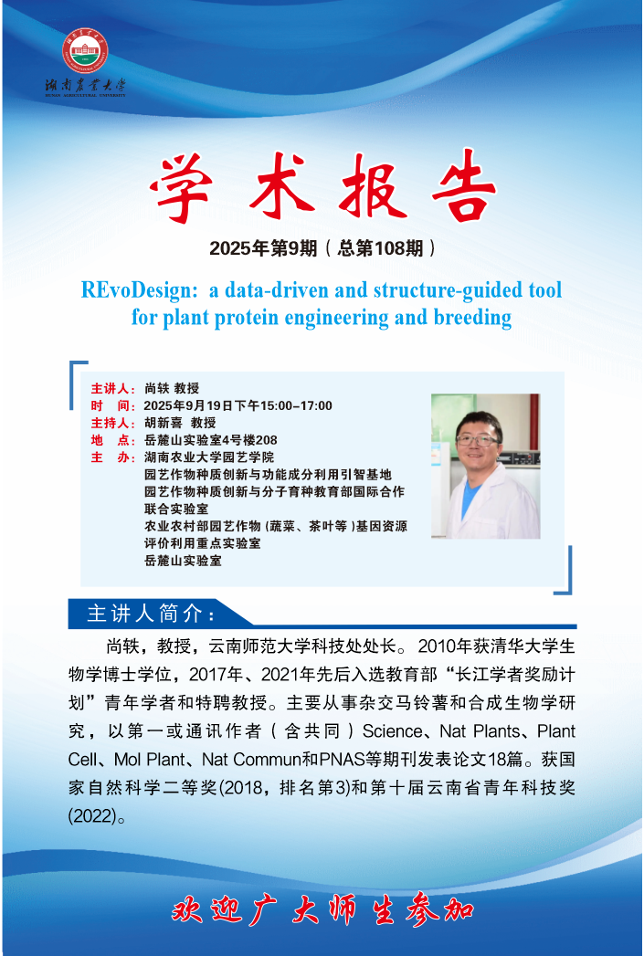 bevictor伟德官网第108期-名师讲坛:REvoDesign: a data-driven and structure-guided tool for plant protein engineering and breeding