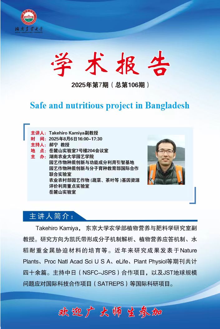 bevictor伟德官网第106期-名师讲坛: Safe and nutritious project in Bangladesh
