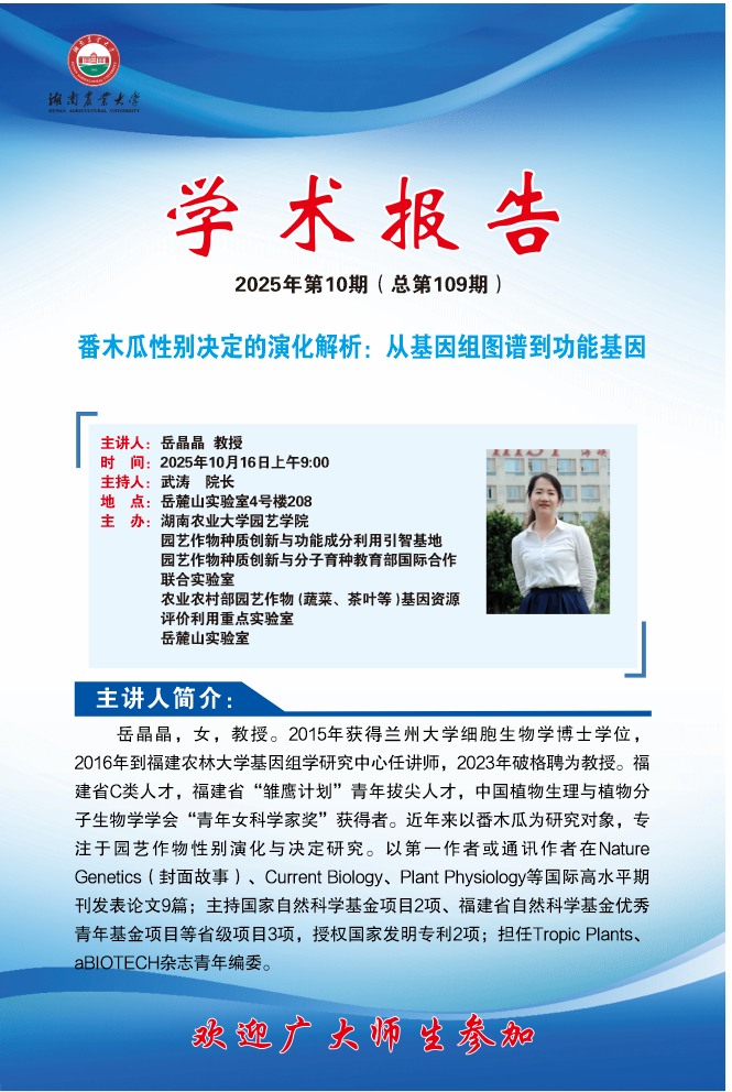 bevictor伟德官网第109期-名师讲坛:番木瓜性别决定的演化解析:从基因组图谱到功能基因