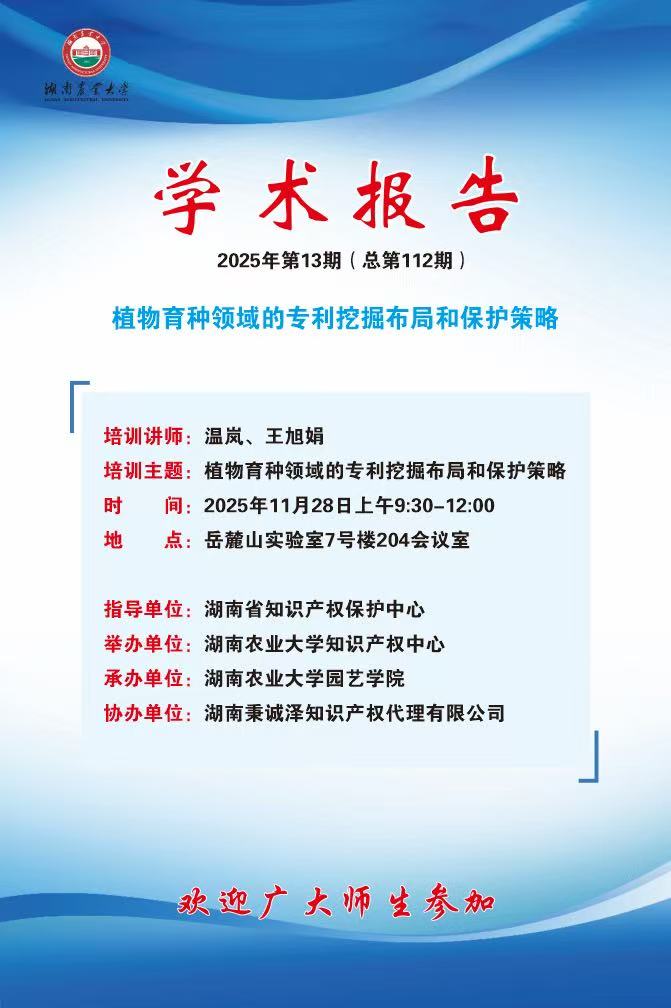 bevictor伟德官网第111期-名师讲坛:植物育种领域的专利挖掘布局和保护策略