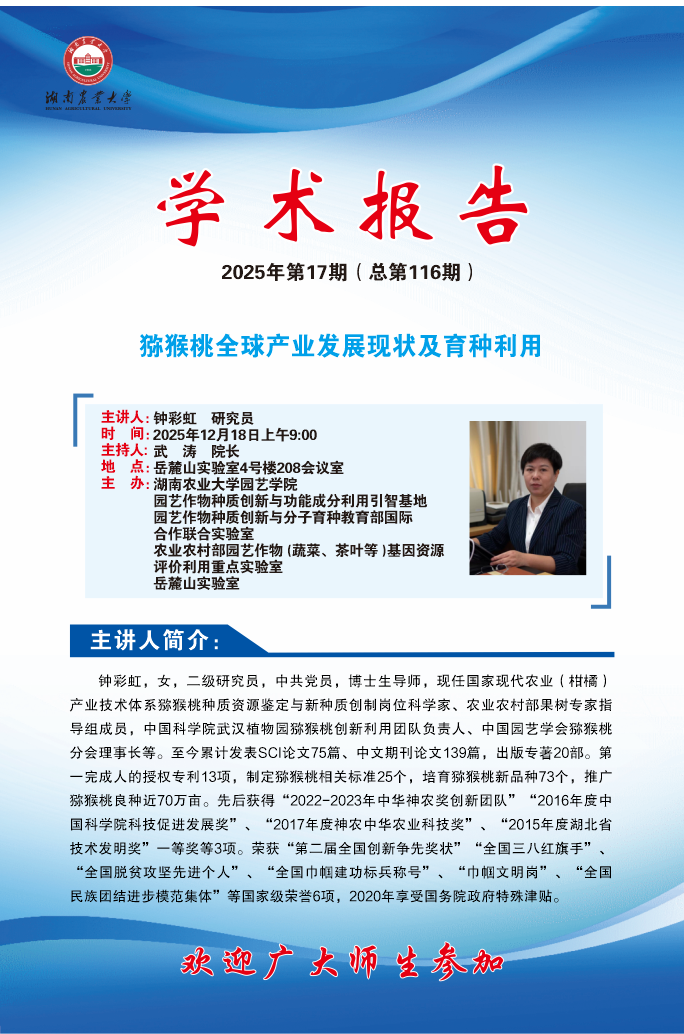 bevictor伟德官网第116期-名师讲坛猕猴桃全球产业发展现状及育种利用