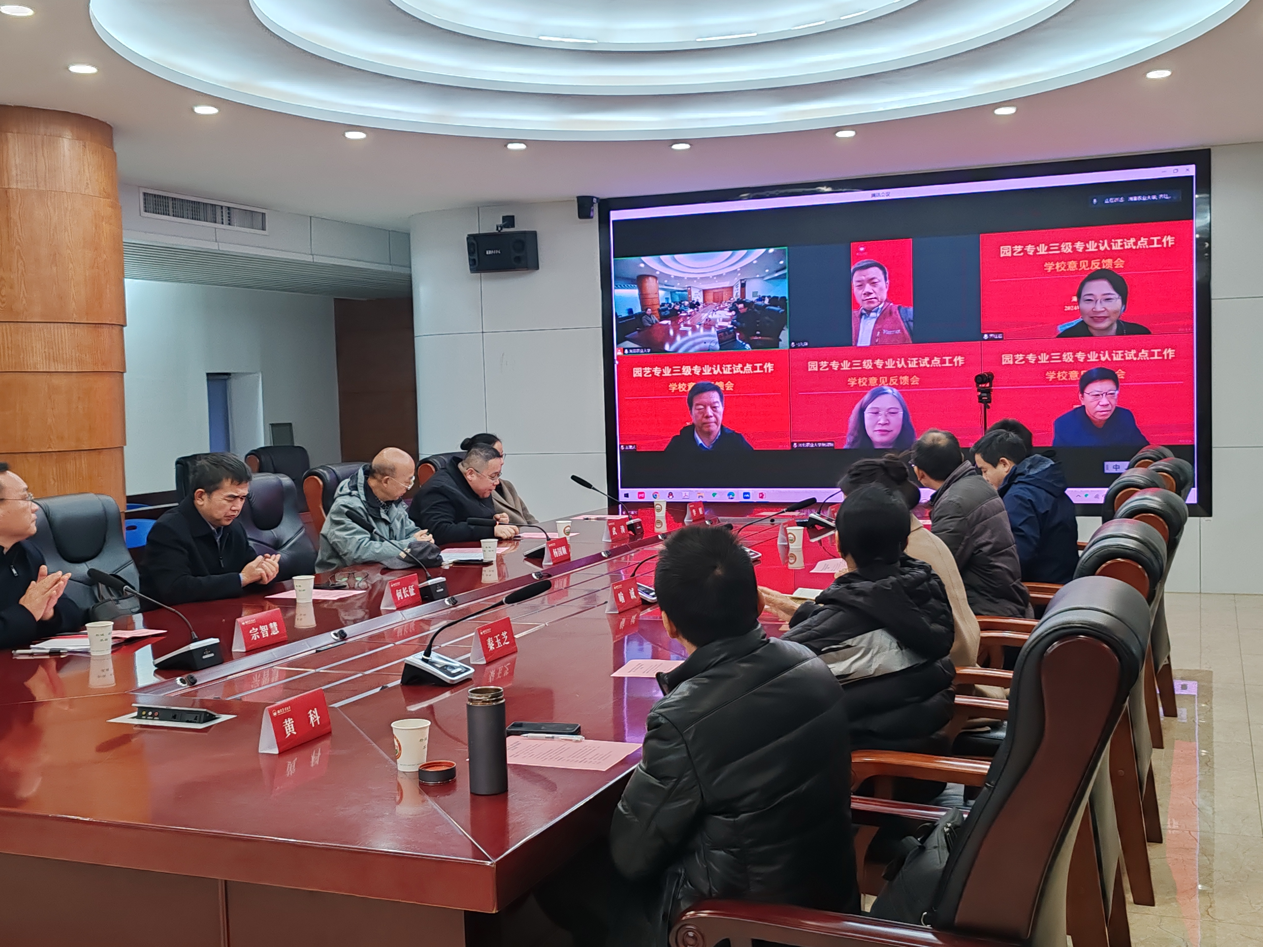 本网讯(bevictor伟德官网 苏倩 )12月13日下午,bevictor伟德官网在文渊馆201会议室以线上线下结合的方式召开园艺专业三级认证试点工作学校意见反馈会。副校长杨国顺,教务处相关职能部门负责人,bevictor伟德官网领导班子成员和教师代表一同参会。会上,杨国顺副校长致辞,对各位参与专业认证的专家表示最热烈的欢迎和最诚挚的感谢,他表示“这次认证工作不仅是对我校专业建设质量的一次全面检验,更是对我们专业理念内涵、要素架构和支持保障机制的一次深度审视。”