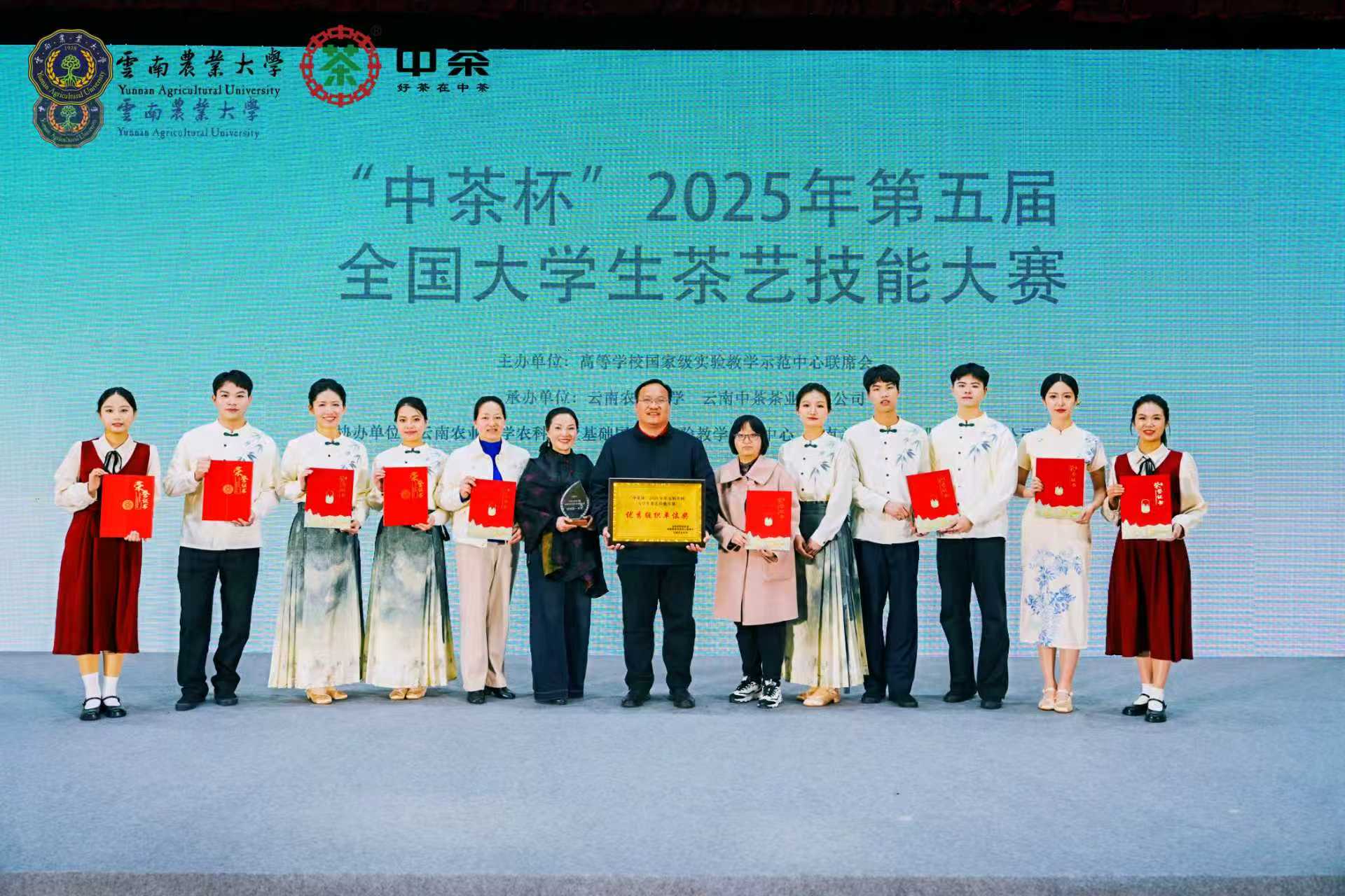 本网讯(bevictor伟德官网 郑诗怡 朱海燕)12月10日至12日,由高等学校国家级实验教学示范中心联席会主办、云南农业大学、云南中茶茶业有限公司联合承办的2025年“中茶杯”第五届全国大学生茶艺技能大赛决赛在昆明举行。我校茶学专业学生在本次比赛中获一等奖5项,二等奖1项,三等奖2项,学校获“优秀组织单位奖”。