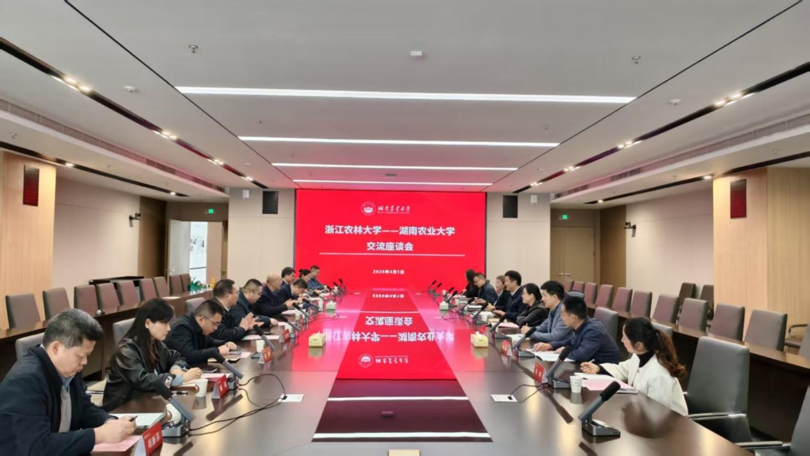 杨国顺代表学校对徐爱俊一行的来访表示欢迎,并介绍了学校办学历史、学科建设及近年来发展成效。他表示,两校同为农林院校,渊源深厚,希望以此次交流为契机,进一步深化合作,共同服务国家农业农村现代化。