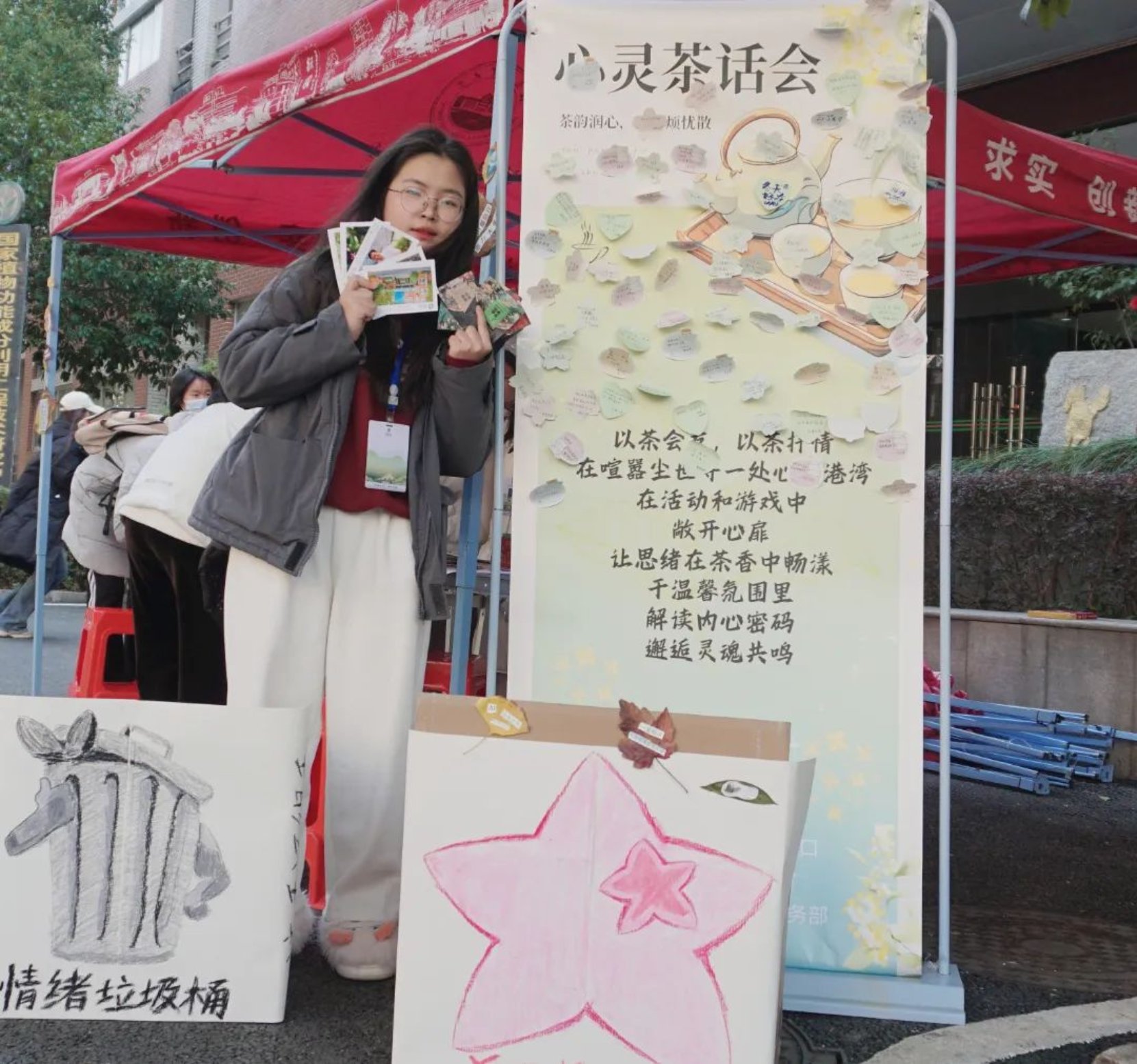 活动现场气氛热烈,成长事务部的同学们积极组织,同学们畅所欲言,分享着彼此的故事与心情。现场设置的“快乐分享箱”收纳了无数欢声笑语,而“情绪垃圾桶”则成为了同学们倾诉烦恼、释放压力的好去处。大家相互聆听、拥抱,在交流中共情,于平凡中找寻温暖与力量。