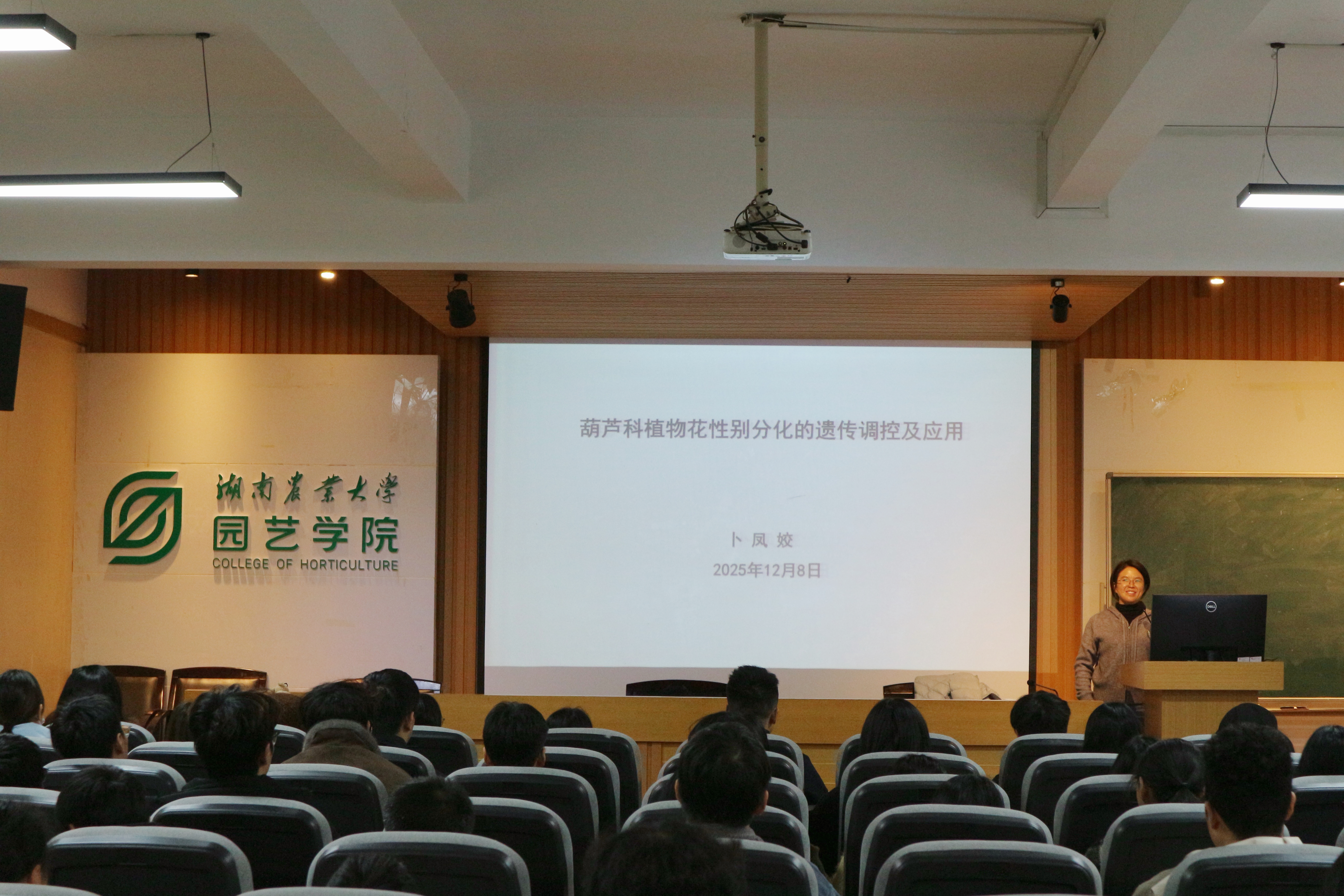 交流环节中,师生围绕 “CsACS1G基因的育种应用潜力”“葫芦科性别分化分子机制”等科学问题展开热烈讨论,现场互动氛围浓厚。本次学术分享既展示了葫芦科性别分化领域的前沿研究进展,也为研究瓜类作物的分子育种与产业应用提供了技术思路,进一步激发了同学们的科研探索热情。