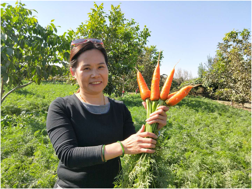 “走了,到村委会领种子去了,杜书记又给我们带来了进口胡萝卜种子,听说这个品种一亩地最少能出3吨胡萝卜”看着一路之隔的海尔妮萨罕叫上隔壁的萨依普罕兴高采烈地赶往大队,艾比吉力力一脸的羡慕,我怎么就不是她们村的呢?自从听说她们村里来了个专家书记,就不时的见她们去大队一会儿带回来一代玉米种子,一会儿拿回来几包蔬菜种子,一会儿又是用大型喷雾器对全村病虫草害的统一防治……都是自己村里没见过的,眼见她们的菜园子里面红的、黄的、青的瓜果长了满园,急得艾比吉力力找到自己村里的第一书记,说“你们都是第一书记,相互肯定认识,让她帮忙也来给咱们讲讲怎么种菜吧”。前几天晚上,艾比吉力力的愿望终于实现了,在自己村委会聆听了一场她们口中的杜书记亲口讲的一堂课,为了不错过好不容易争取来的机会,他一连问了5、6个问题。杜琳辉不仅给本村的村民指导培训,还热心帮助邻村发展生产,只要农民有需求,她无论多忙都要挤出时间,给群众讲解科学种植管理技术,沥青托卡依、巴格墩、卡尔礅……都留下了她的足迹。